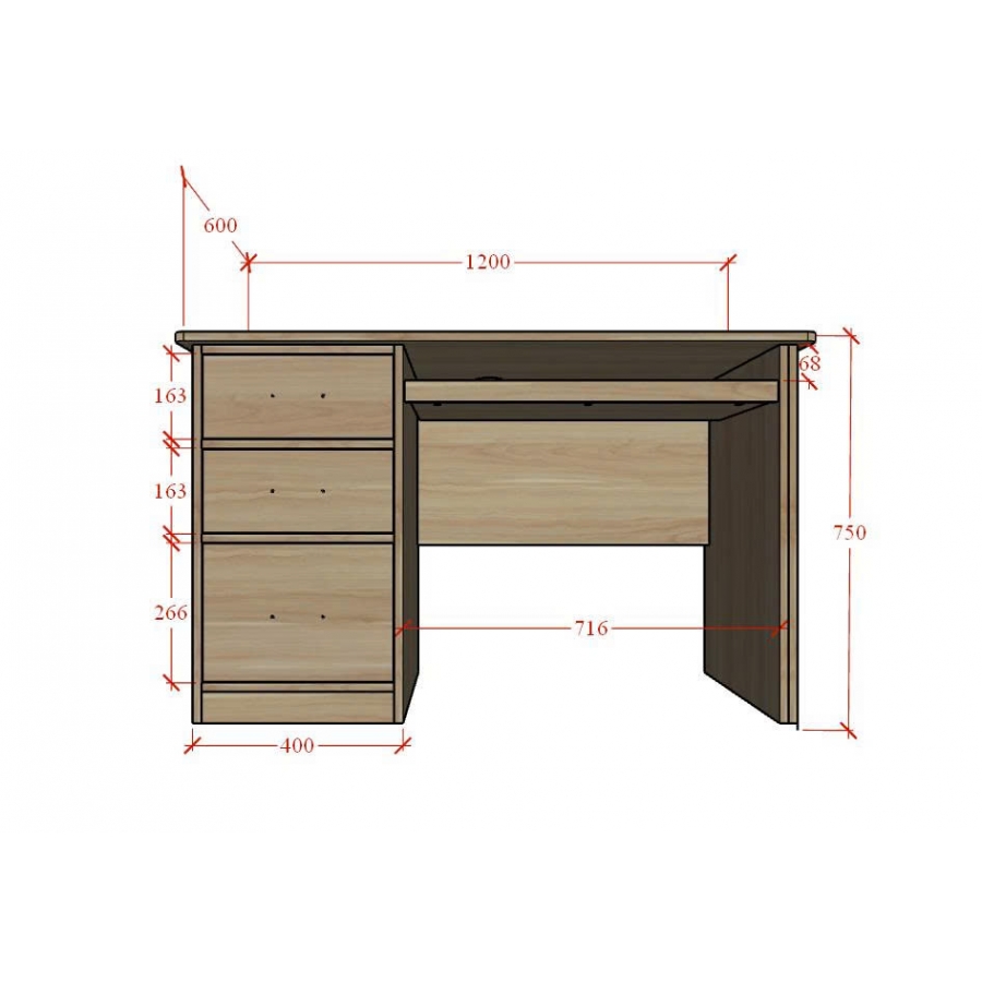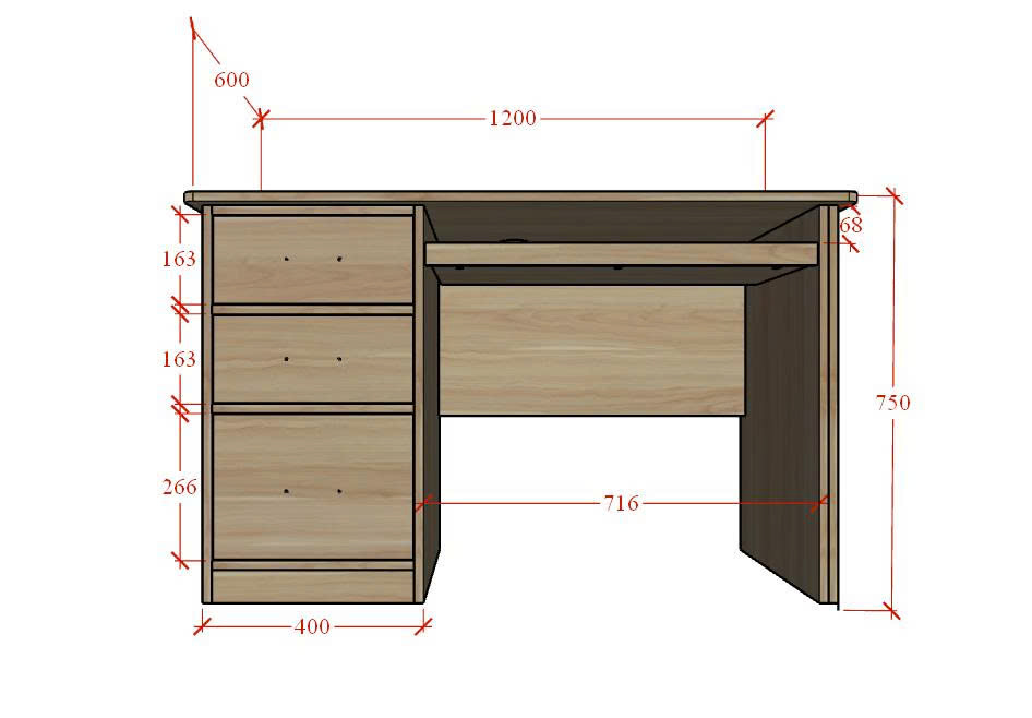 Mặt bàn dài 1200mm sử dụng thoải mái cho học tập và làm việc