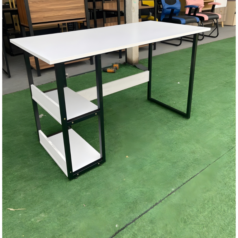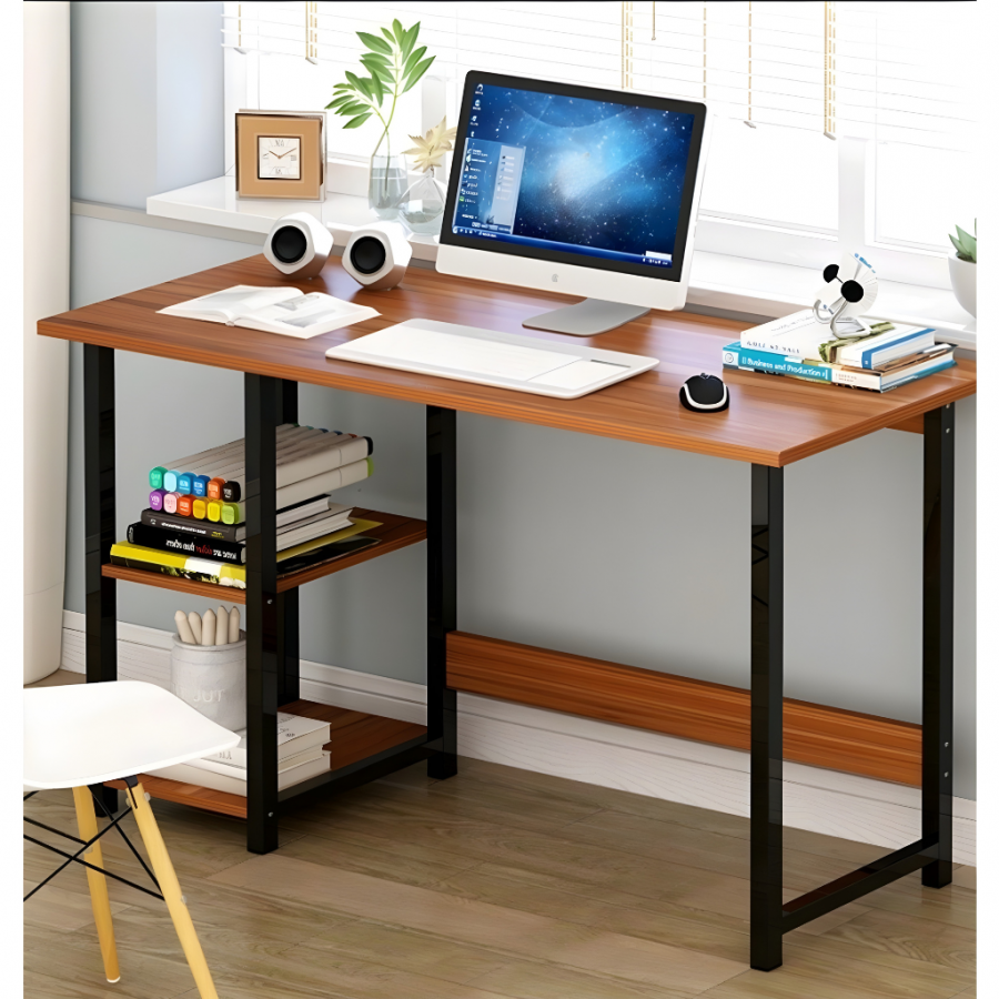 Thiết kế bàn có kệ bên hông tiện lợi, giúp sắp xếp sách vở, tài liệu, thùng đồ hoặc phụ kiện làm việc gọn gàng, tối ưu không gian sử dụng mà không chiếm thêm diện tích. Thanh giằng ngang phía sau giúp tăng độ cứng và ổn định cho toàn bộ bàn.