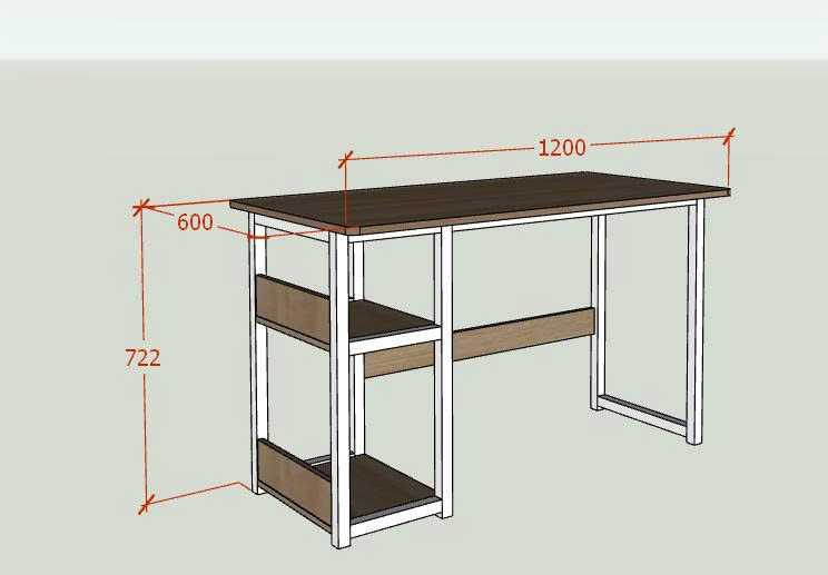 Bàn học – bàn làm việc khung sắt mặt gỗ MDF melamin size 1200