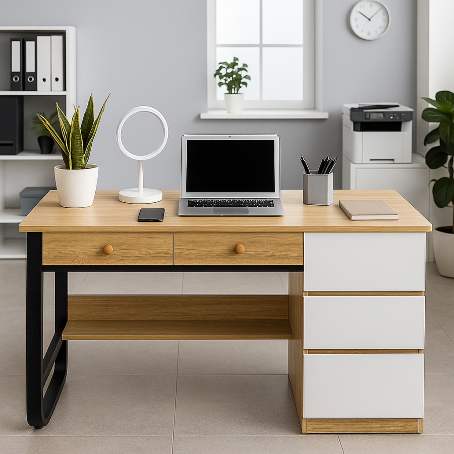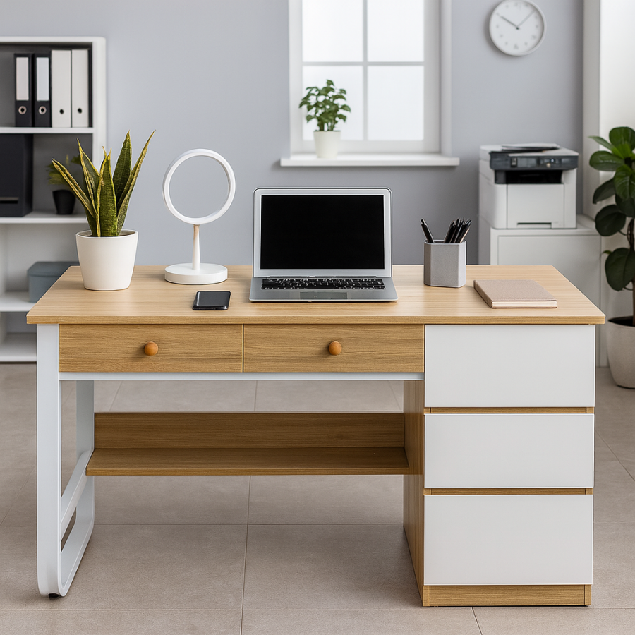 Bàn học – bàn làm việc mã BHT104 là phiên bản kích thước lớn 1400mm, phù hợp cho nhu cầu sử dụng rộng rãi và chuyên nghiệp hơn. Thiết kế hiện đại, đường nét vuông vắn, tối giản nhưng đảm bảo công năng và tính thẩm mỹ cao.