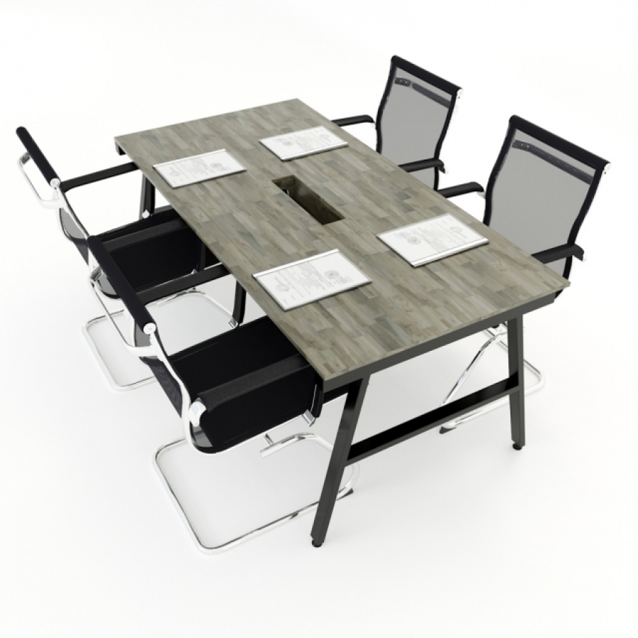 Bàn họp HBAC011 AConcept chân sắt chữ nhật 25x50. Bàn văn phòng gỗ cao su ghép tiêu chuẩn AA dày 17mm PU màu gỗ tự nhiên luôn có một vẻ đẹp riêng, thân thiện với môi trường, đối với các văn phòng mở, văn phòng kết hợp với cây xanh thì việc sử dụng bàn gỗ cao su chân sắt kết hợp trở nên hoàn hảo. Chất liệu gỗ cao su tại Cường Phát Steel là gỗ ghép dày 17mm tiêu chuẩn AA ( 2 mặt đẹp) được xử lý qua 4 công đoạn trước khi PU hoàn thiện cho bề mặt sản phẩm rất đẹp mắt, chống nước tuyệt đối. Khung chân sắt sơn tĩnh điện với cơ cấu ngàm lắp ráp dễ dàng.