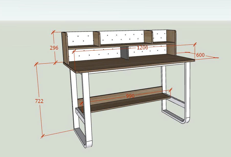 Bàn làm việc khung sắt MDF phủ Melamine có kệ R600 x D1200 x C750
