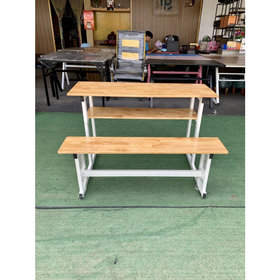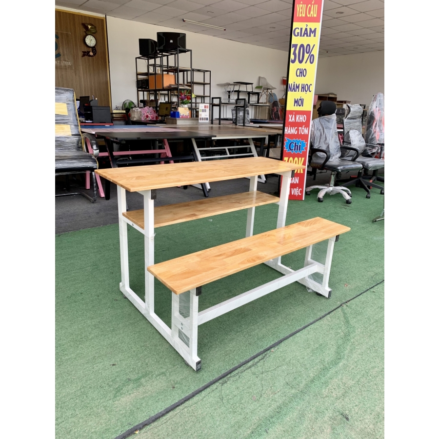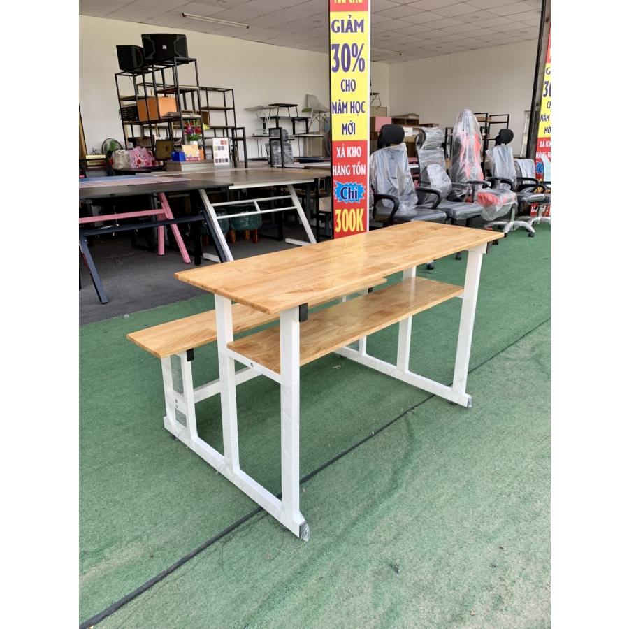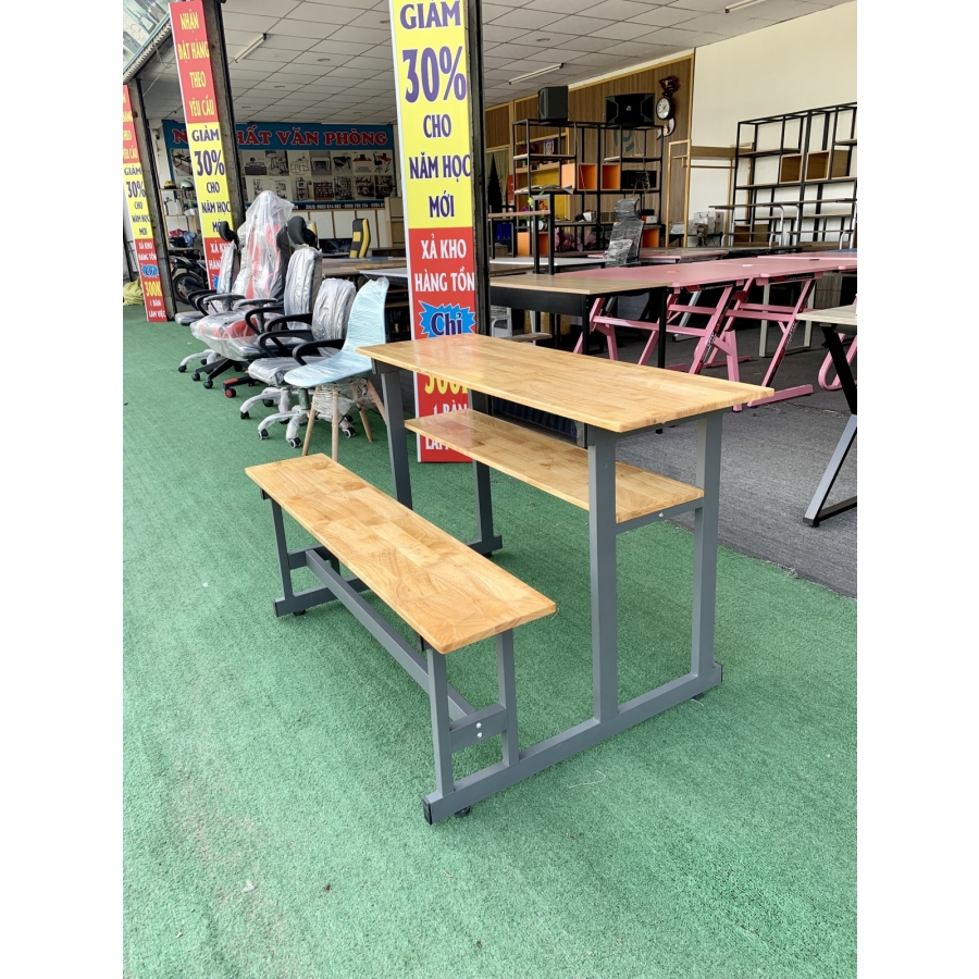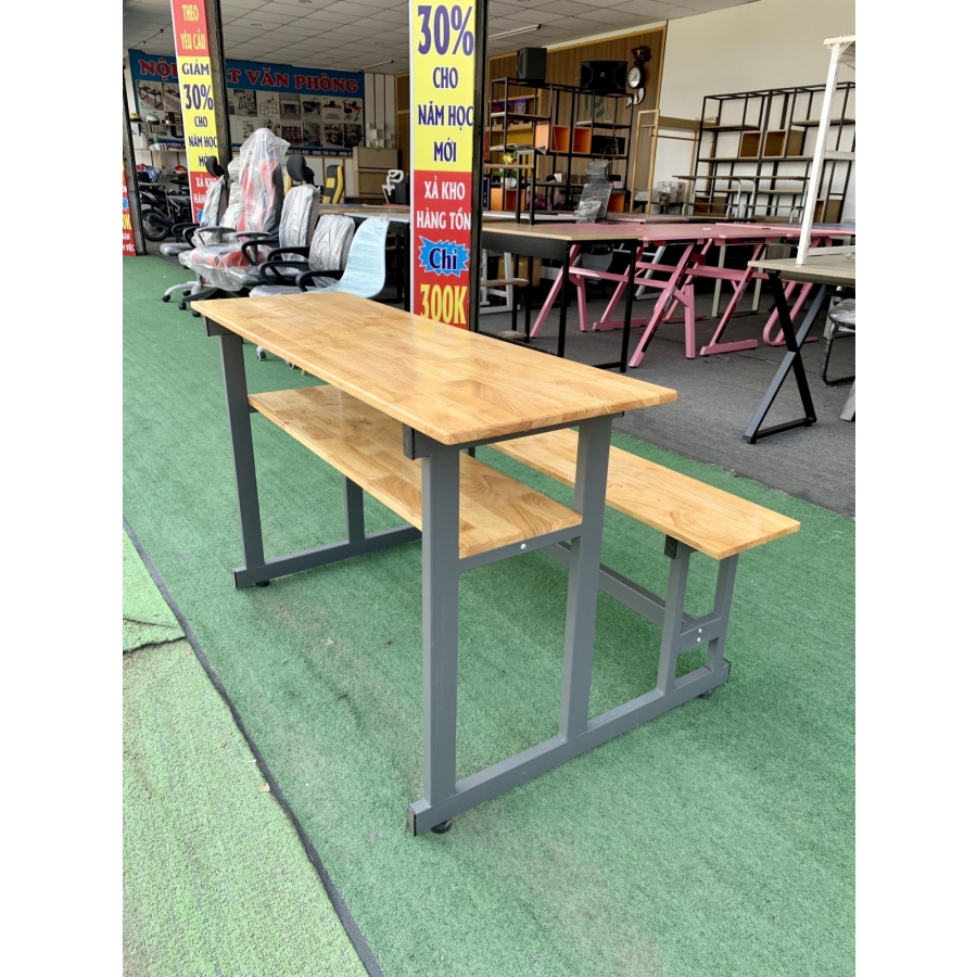 bàn học sinh đôi 2 người chân sắt mặt gỗ caosu
