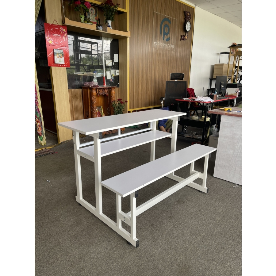 - Thiết kế vô cùng gọn gàng khi bàn liền luôn với ghế tạo sự tiện ích cho người dùng nhất là môi trường trường học.